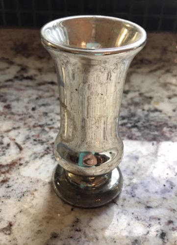 Title (ebay affiliate link): Mercury Glass Bud Vase Vintage Silver 4" Cottage Shabby Hand Painted Petite