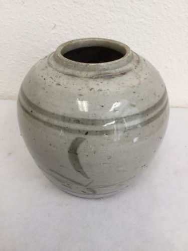 Title (ebay affiliate link): Antique Stoneware Chinese Blue Grey White Ginger Jar Late Ming Early Qing
