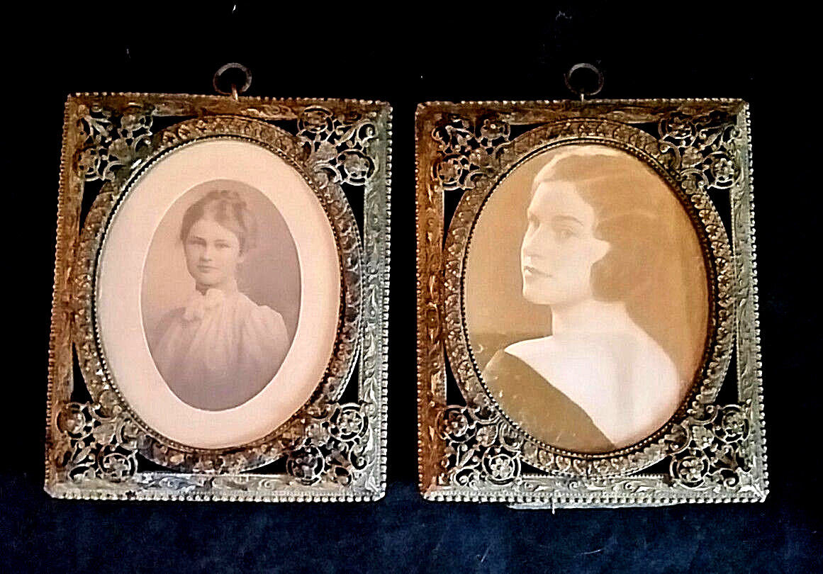 Title (ebay affiliate link): Antique Victorian Picture Frame Set Pair Brass Filigree Original Photos 3x4"