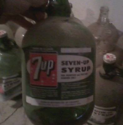 Title (ebay affiliate link): Vintage Collectible 7UP One Gallon Green Glass Fountain Syrup Jug (Madein USA!)