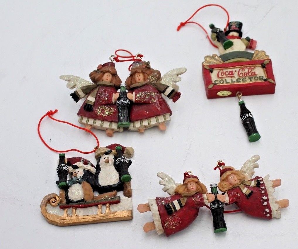 Title (ebay affiliate link): FOUR (4) CHRISTMAS TREE ORNAMENTS COCA COLA ANGELS SNOWMEN 1998-1999-2000 RESIN