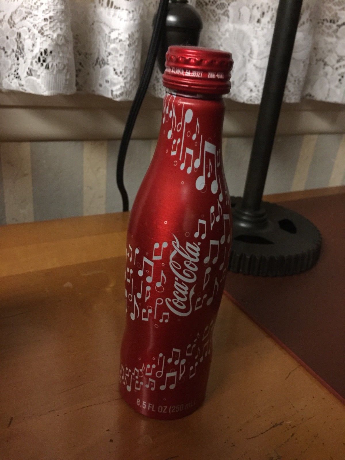 Title (ebay affiliate link): Rare Musical Notes Aluminum Coca-Cola Bottle Full Unopened Coke