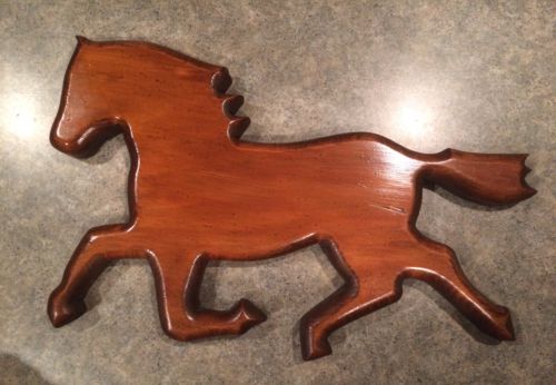 Vintage American Folk Art Hand-Carved Wood Horse Wall Hanging