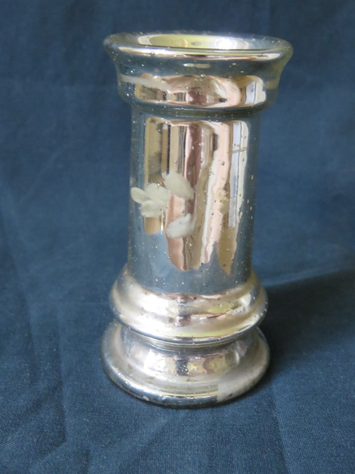 Title (ebay affiliate link): ANTIQUE SILVER MERCURY GLASS BUD VASE - 19TH C - Victorian - 3 1/4" - Decorated