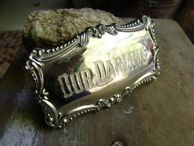 Sweet Fancy Antique Our Darling Child''s Silver Metal Coffin Casket Plaque