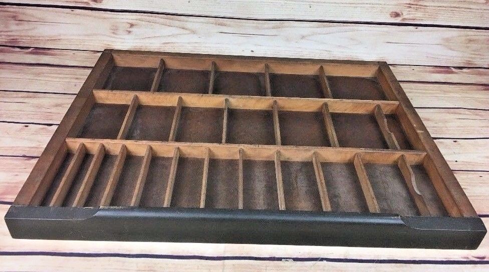 Title (ebay affiliate link): VINTAGE Printers Type Cabinet Drawer Shadow Box Tray Wood 21.75 X 16.5 24 DRAWER
