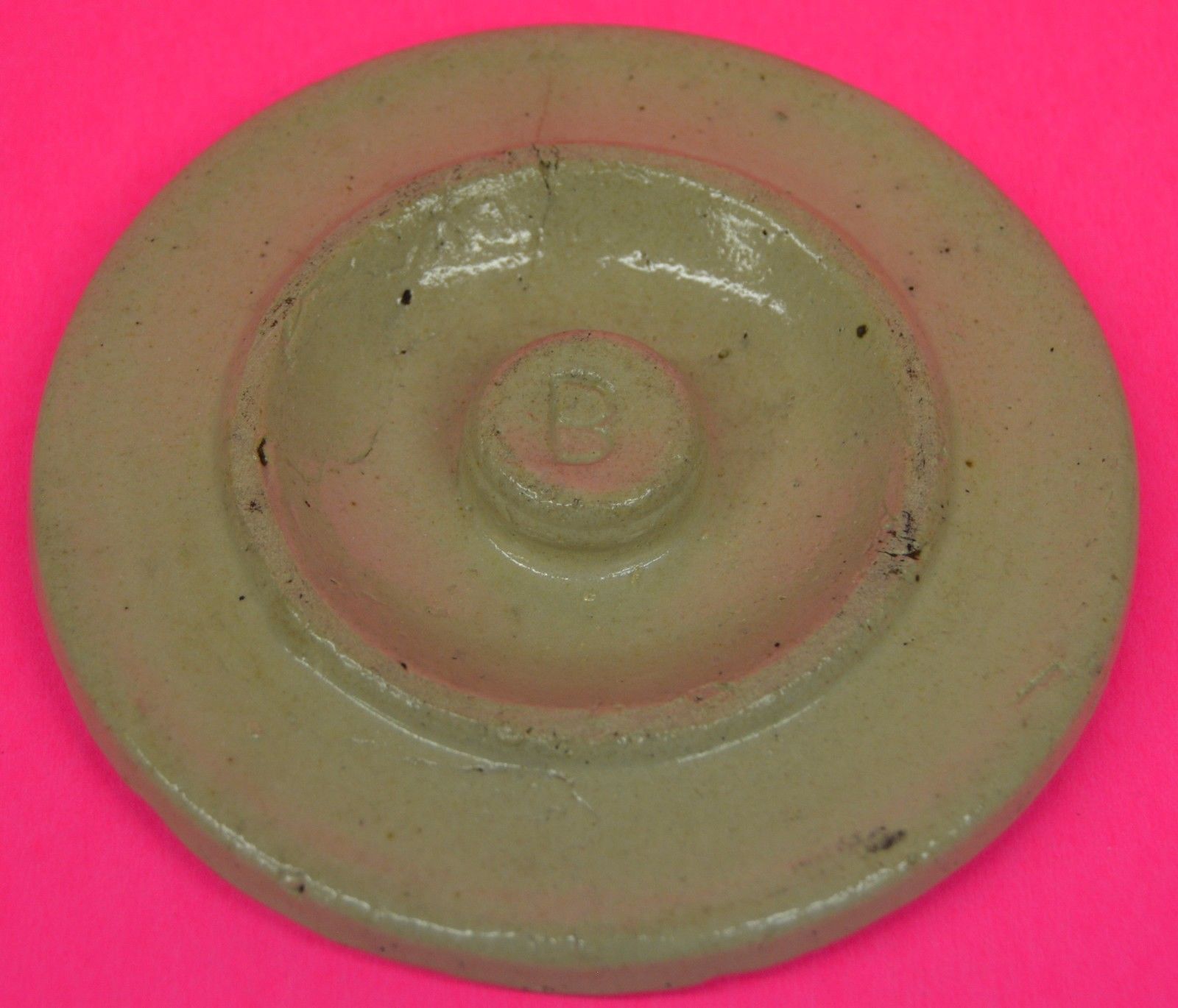 CROCK LID~5" DIAMETER~MARKED B~HAS BUTTON KNOB~VINTAGE~