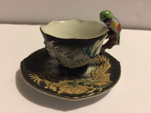 Title (ebay affiliate link): Vtg Miniature Made In Japan Dragonware China Cup & Saucer w/ Parrot Handle