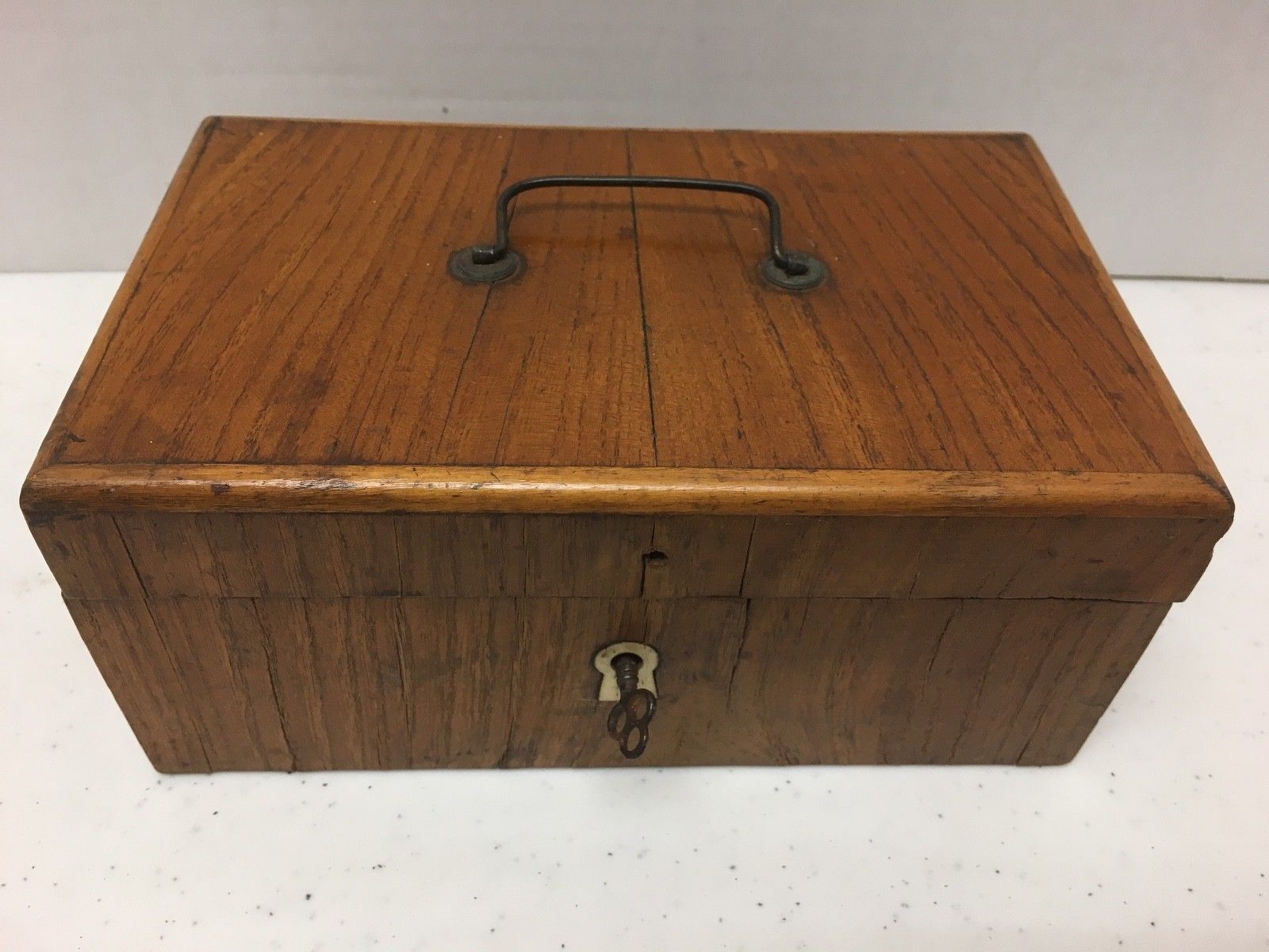 19th Century Hardwood Veneer Sewing/Jewelry Box w/Original Key