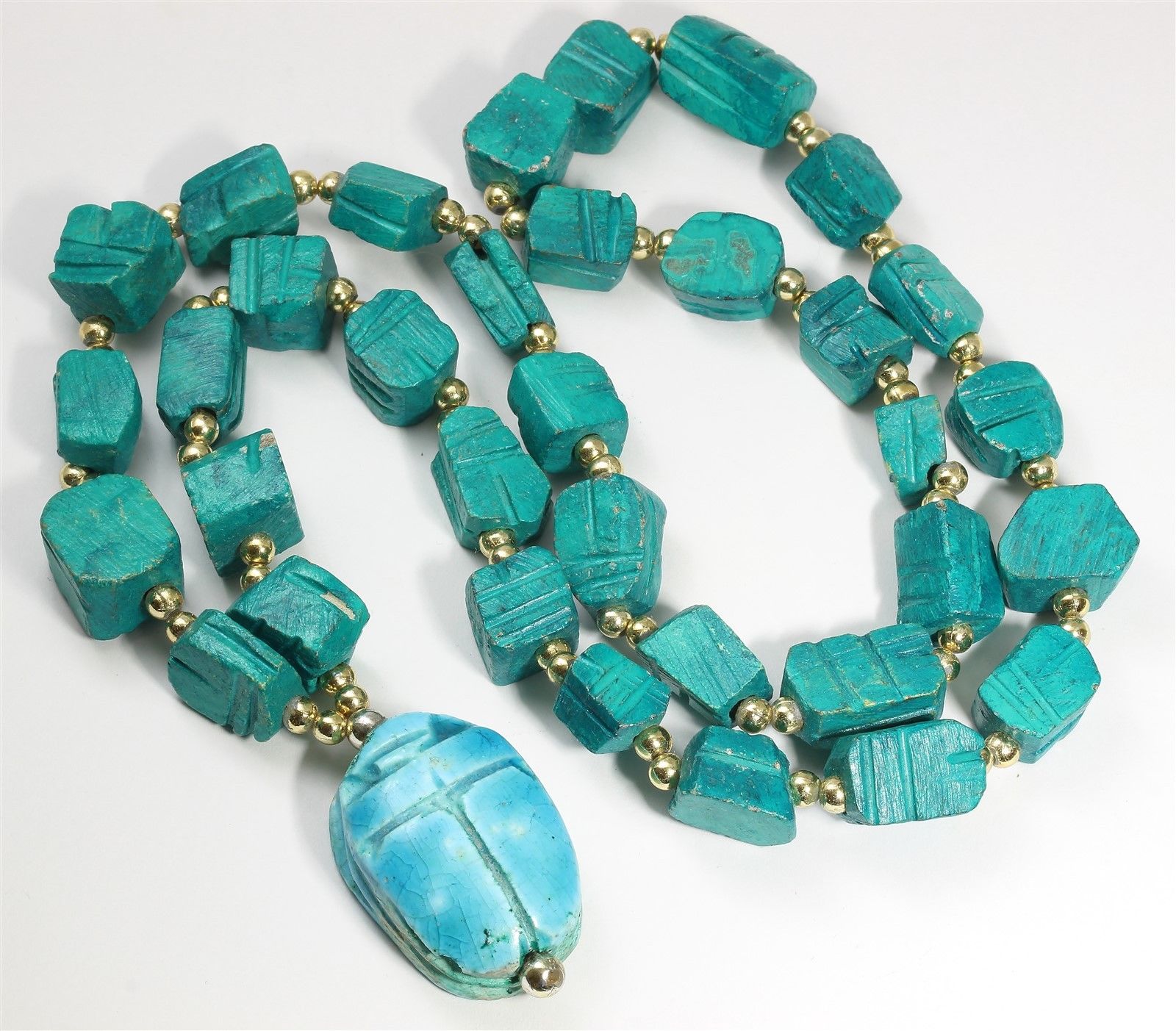 Title (ebay affiliate link): Vintage Ancient Egyptian Faience Green Turquoise Carved Scarab Bead Necklace 23"