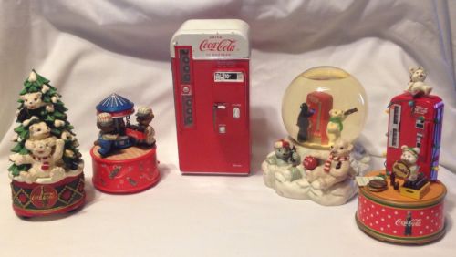Title (ebay affiliate link): 5 Vintage Coca Cola Collectibles Lot Music Boxes, Snow globe And Bank