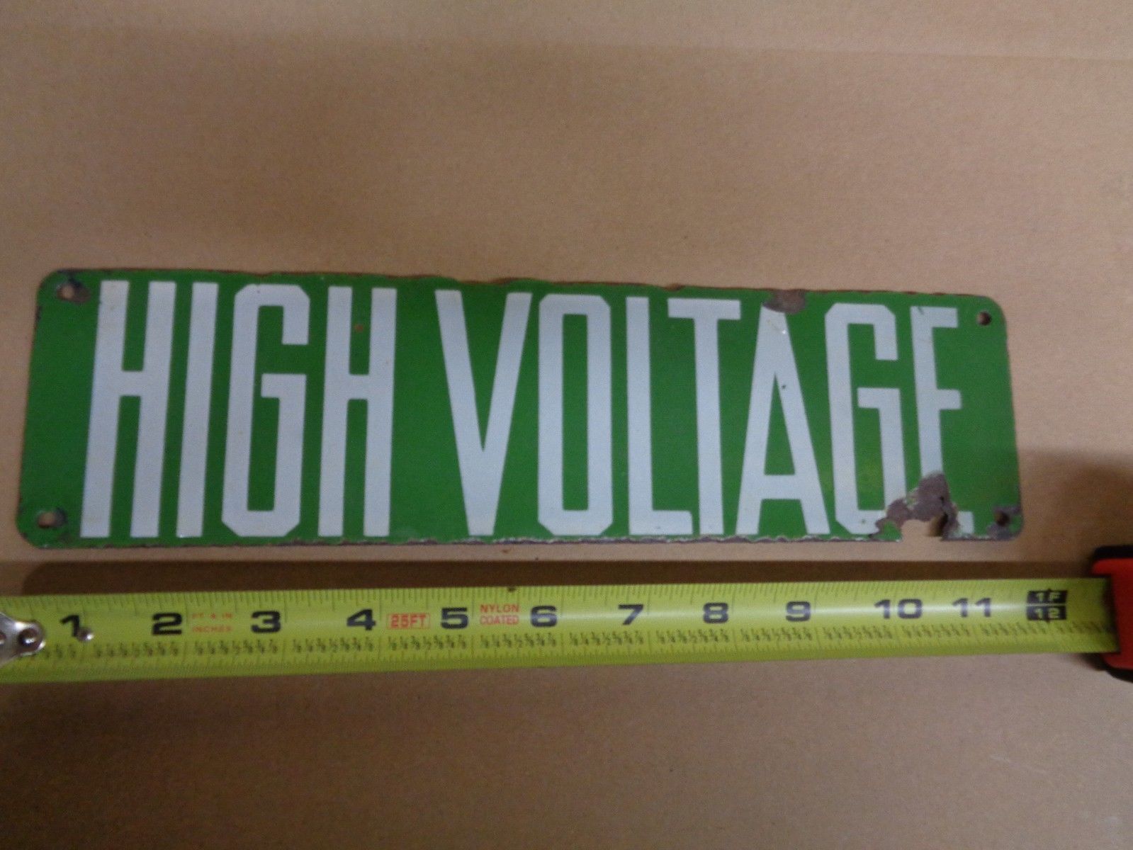 OLD GREEN PORCELAIN SIGN HIGH VOLTAGE