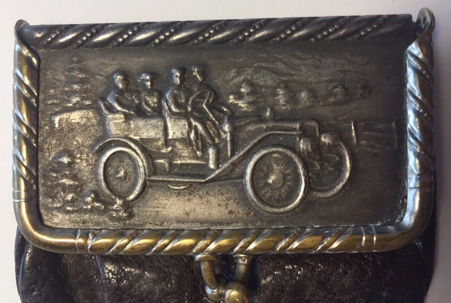ANTIQUE TOURING AUTO COIN PURSE ''LINCOLN CORNICE & METAL WORKS'' LINCOLN NEBRASKA