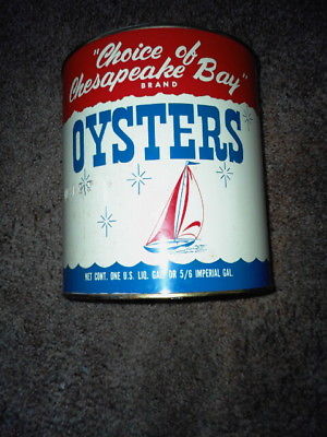 "Choice of the Chesapeake Bay" brand Oysters Tin One Gallon Can Remlik, Va