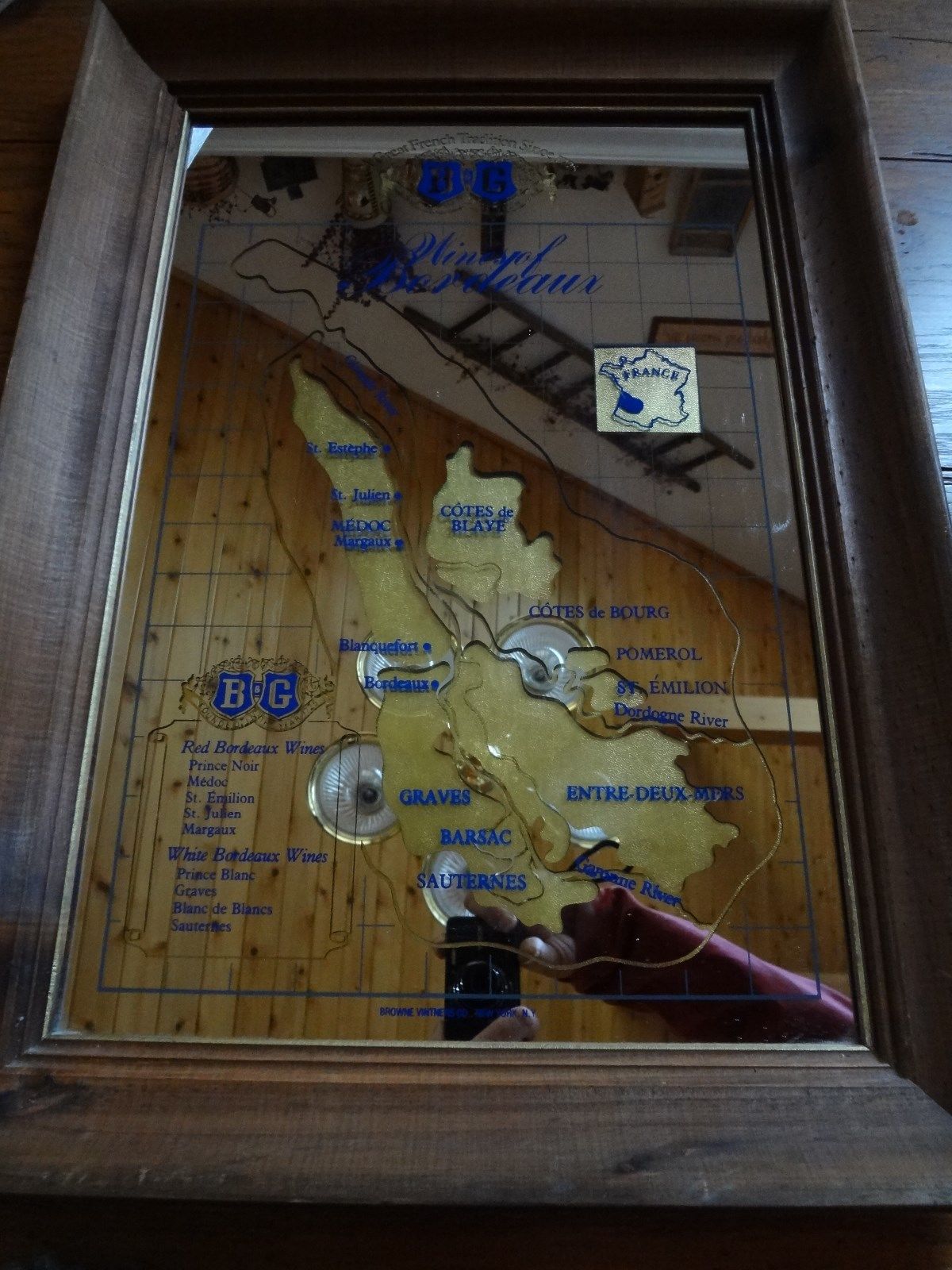 Vintage B&G Wines of Bordeaux mirror bar sign advertisment