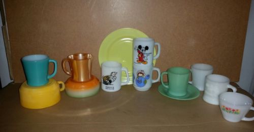 Title (ebay affiliate link): VINTAGE FIRE KING ANCHOR HOCKING MILK GLASS DISHES JADEITE, MICKEY, & MORE