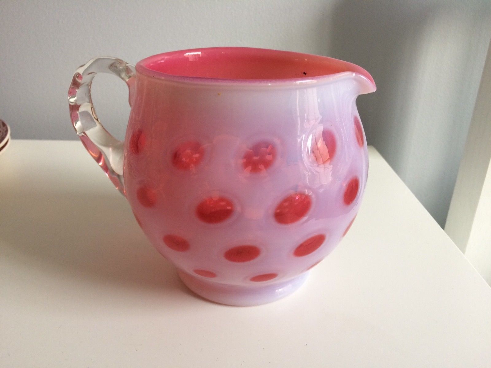 Vintage Pink/White quart milk glass pitcher, in perfect condition