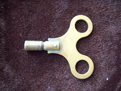 ANTIQUE BRASS CLOCK WINDING KEY 1 7/8" WIDE x 2" TALL