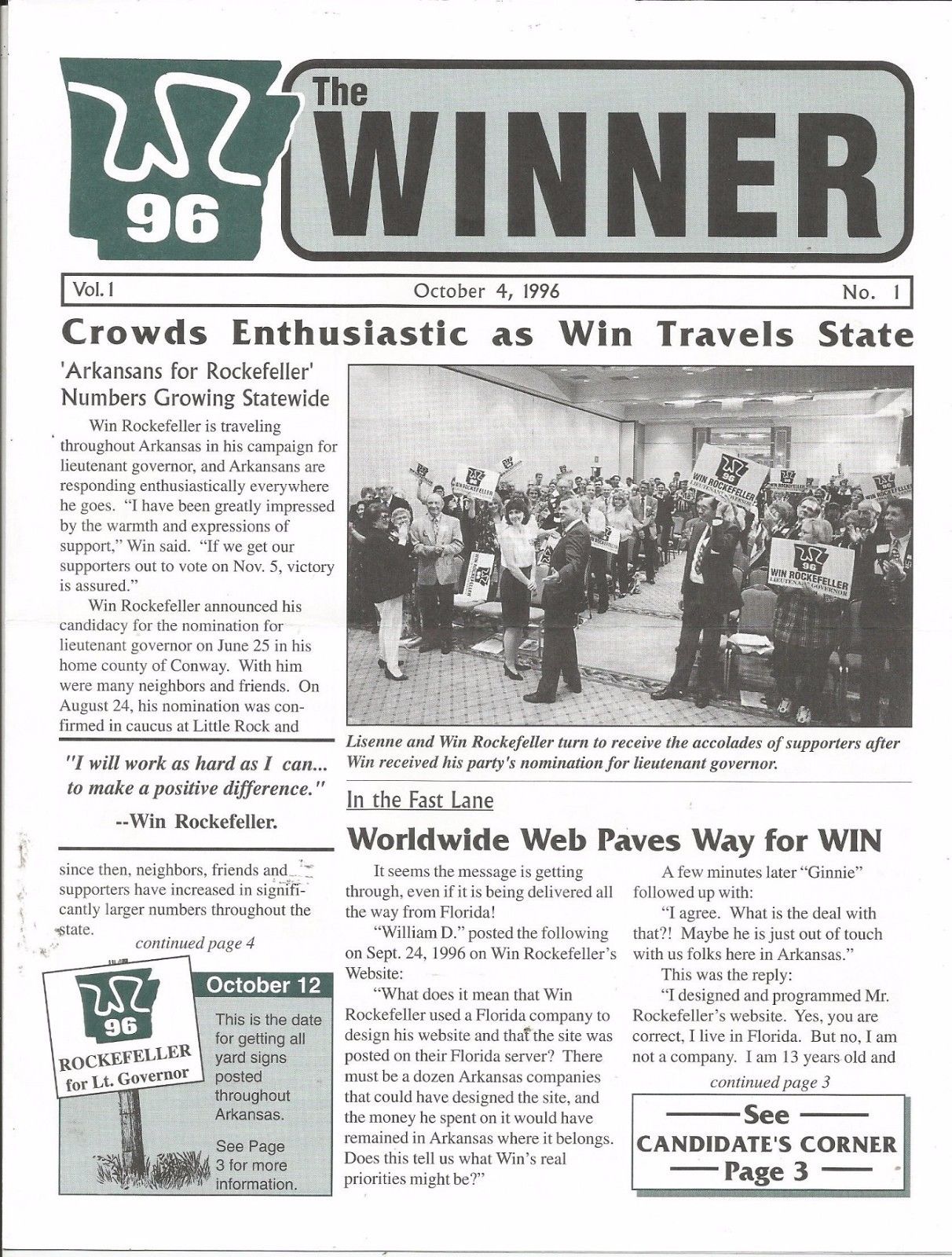 WIN ROCKEFELLER FOR ARKANSAS LIEUT GOVERNOR LOT