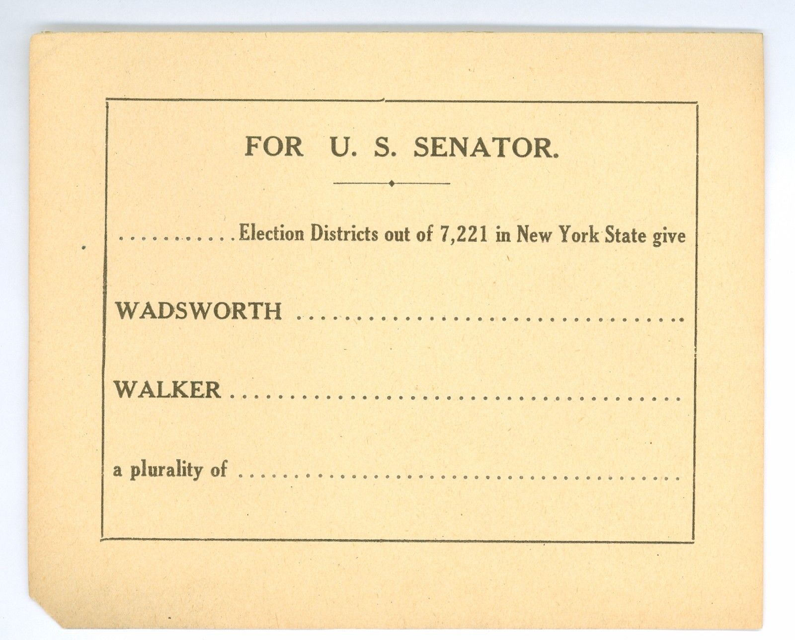 Vintage 1920 New York U.S. Senator Wadsworth Walker Political Election Slip