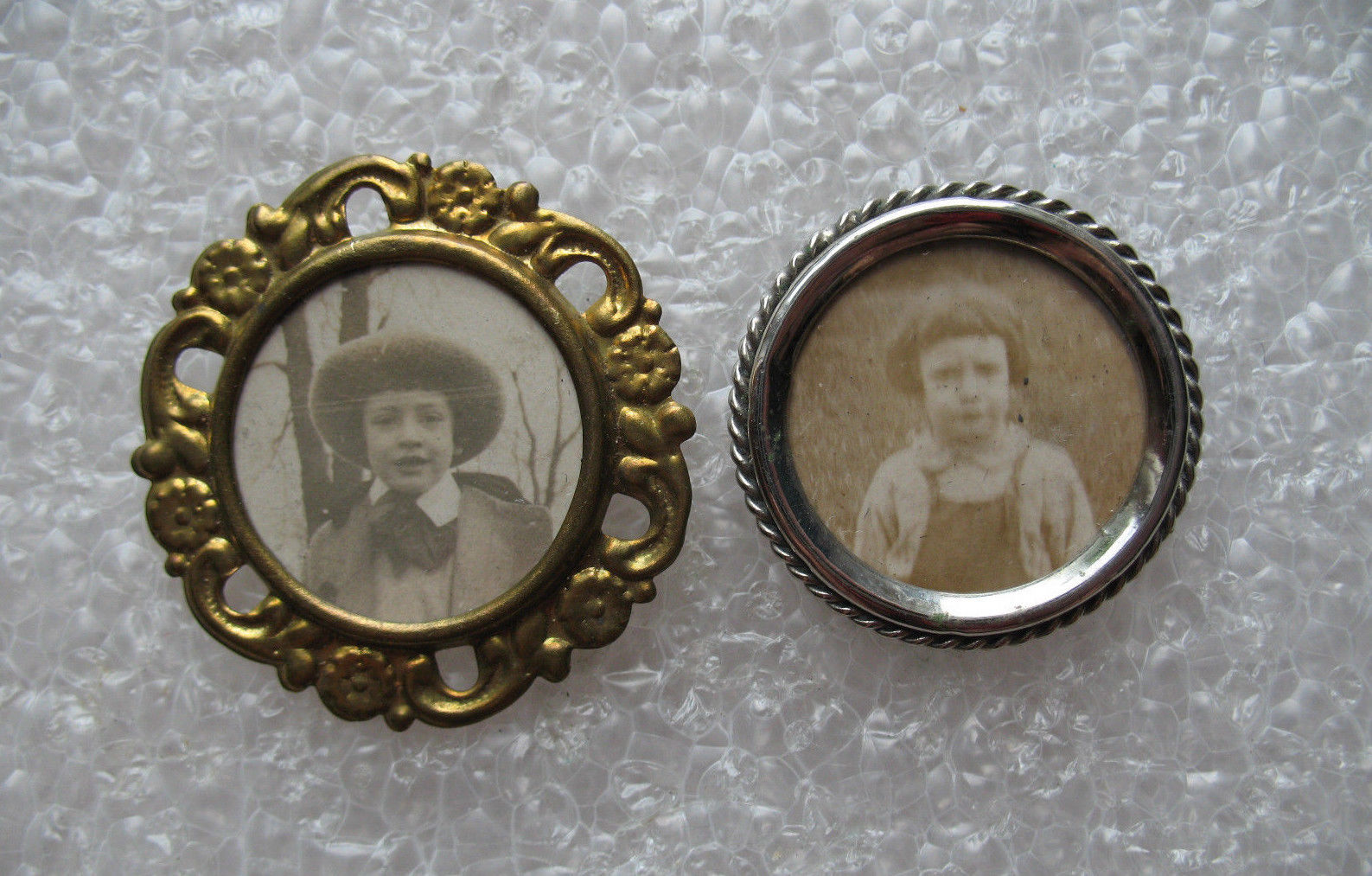 Title (ebay affiliate link): Vintage Photo Buttons Of Young Children In Ornate Silver & Gold Tone Frames