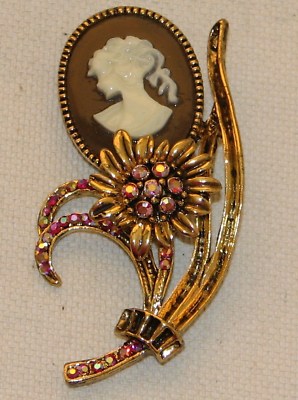 Title (ebay affiliate link): ANTIQUE STYLE PINK RHINESTONES FLOWER CAMEO BROOCH PIN
