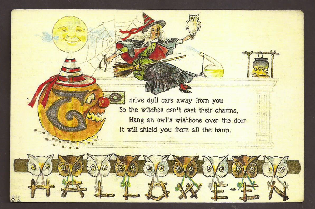Hallowen, Witch, Owls, Pumpkin, Moon, Postcard, Carte Postale