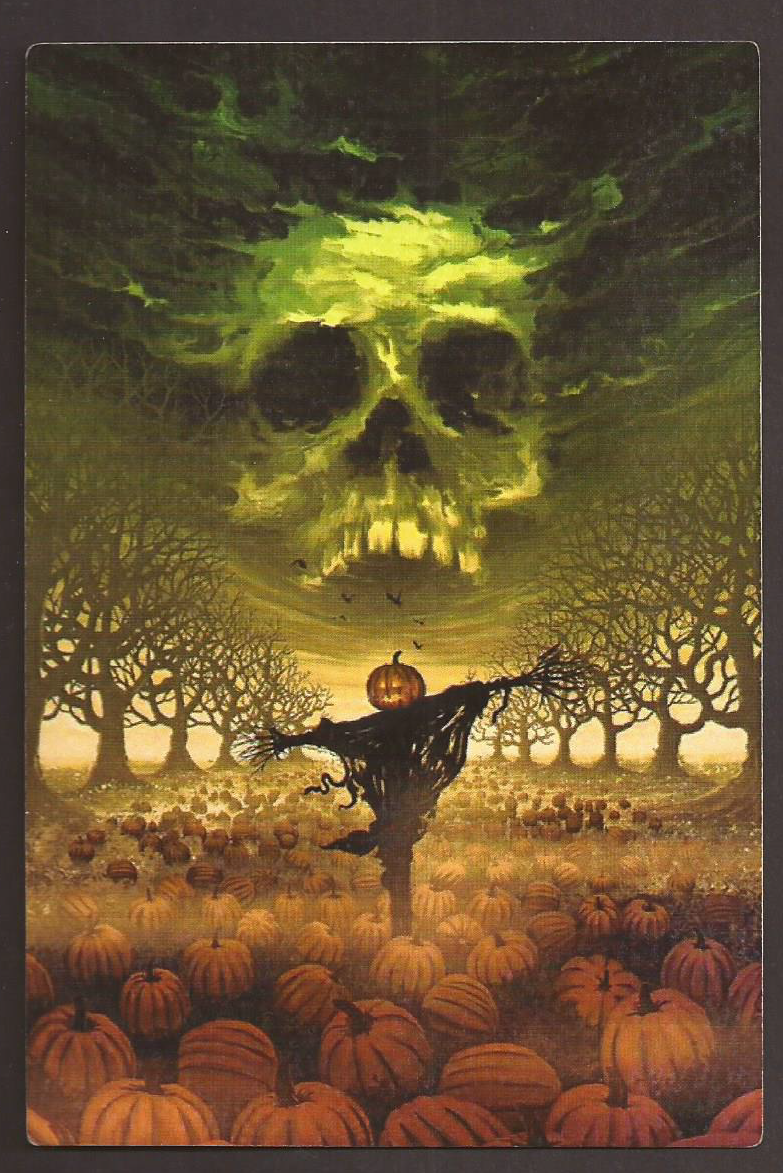 Title (ebay affiliate link): Creepy Halloween, Skull and The Bogy Pumpkin, Postcard, Carte Postale,