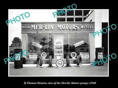 OLD LARGE HISTORIC PHOTO OF ST THOMAS ONTARIO, THE MERLIN MOTOR GARAGE c1940