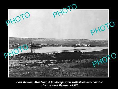 OLD LARGE HISTORIC PHOTO OF FORT BENTON MONTANA, VIEW OF TOWN & STEAMBOAT 1900 1