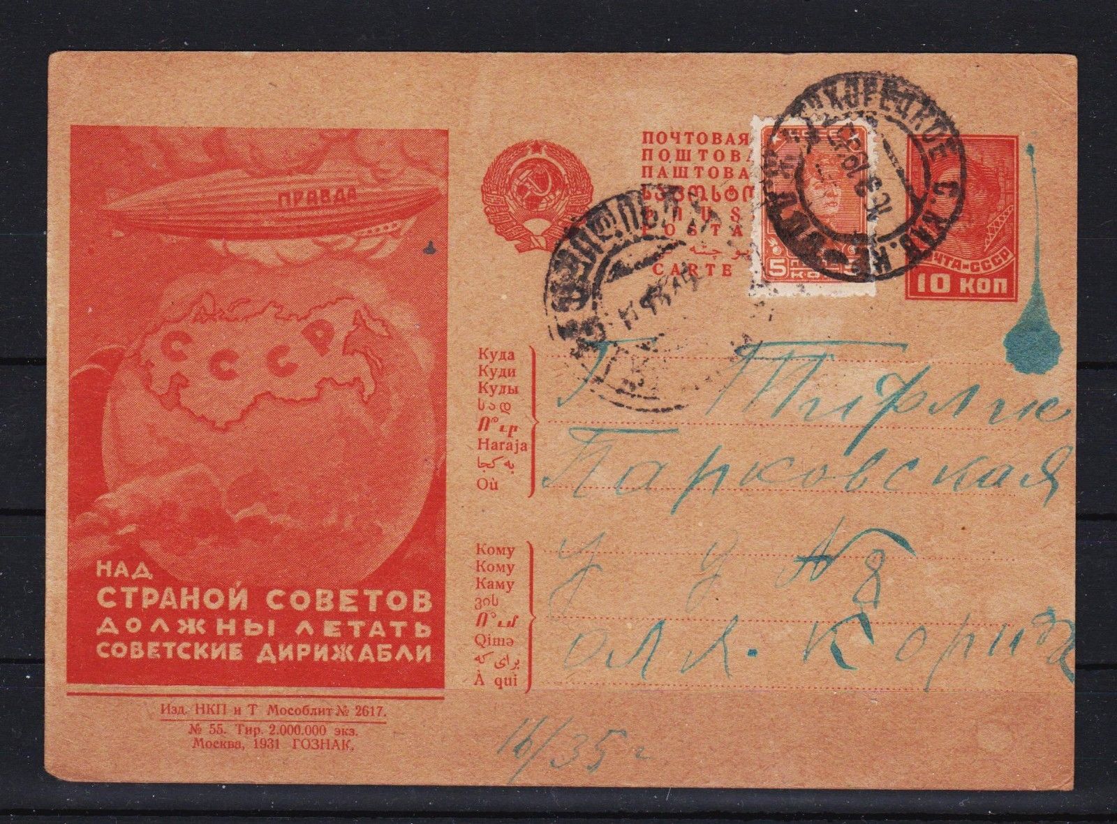 RUSSIA 1935 AGITATIONAL POSTCARD. "AIRSHIP"