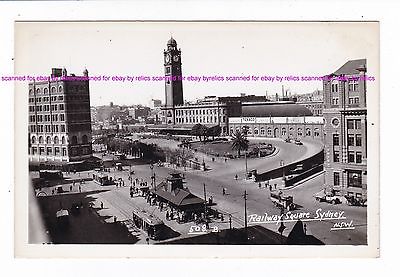 RAILWAY SQUARE Sydney VINTAGE RPPC c.1920-30 TRAMS Trucks BUS Cars STATION Au