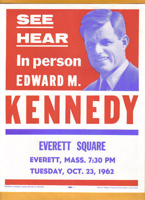 Title (ebay affiliate link): 1962 TED KENNEDY FLYER 1st SENATE RUN EVERETT MA COLOR