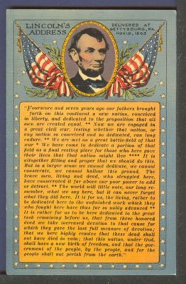 Title (ebay affiliate link): Abraham Lincoln Gettysburg Address Penn 1940s Postcard