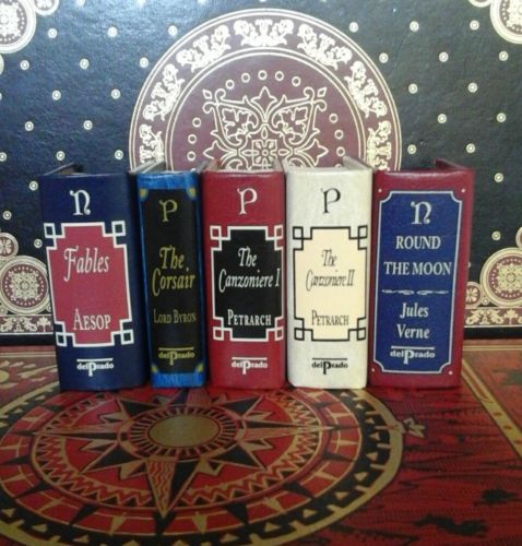 Title (ebay affiliate link): 5 Del Prado Miniature Books Aesop Fables, Lord Byron, Jules Verne, Petrarch.