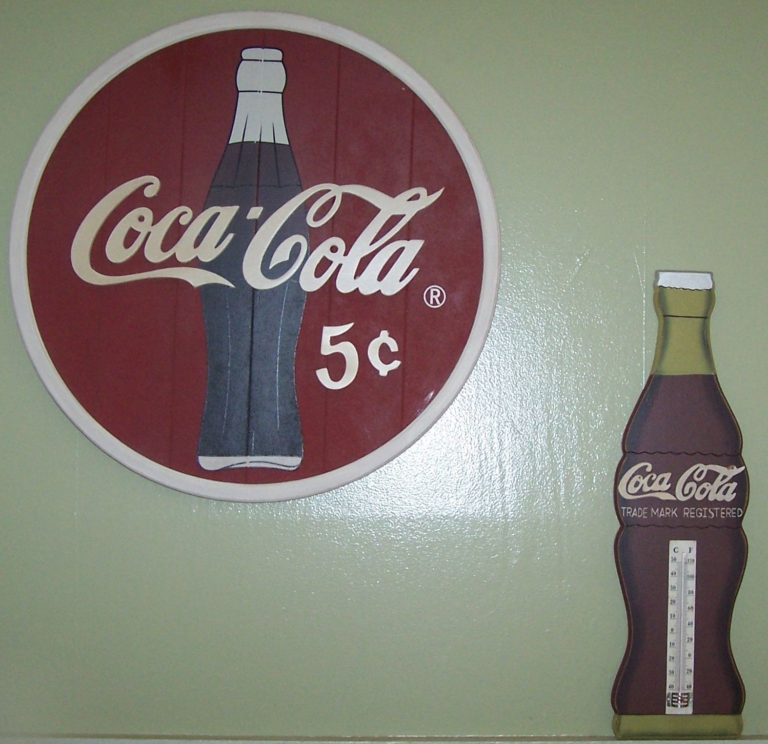 Coca Cola 18" round barrel lid Sign & 17" shabby Chic thermometer sign both