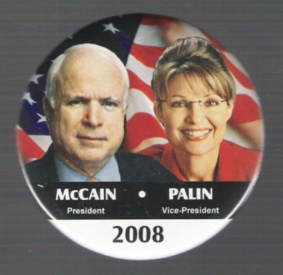Title (ebay affiliate link): John McCain presidential campaign button, Sarah Palin