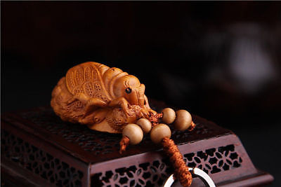Wood 3D Carving Chinese Wealth Cicada Statue Sculpture Pendant Key Chain