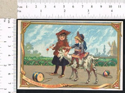 Victorian Trade Card - Girls & goat