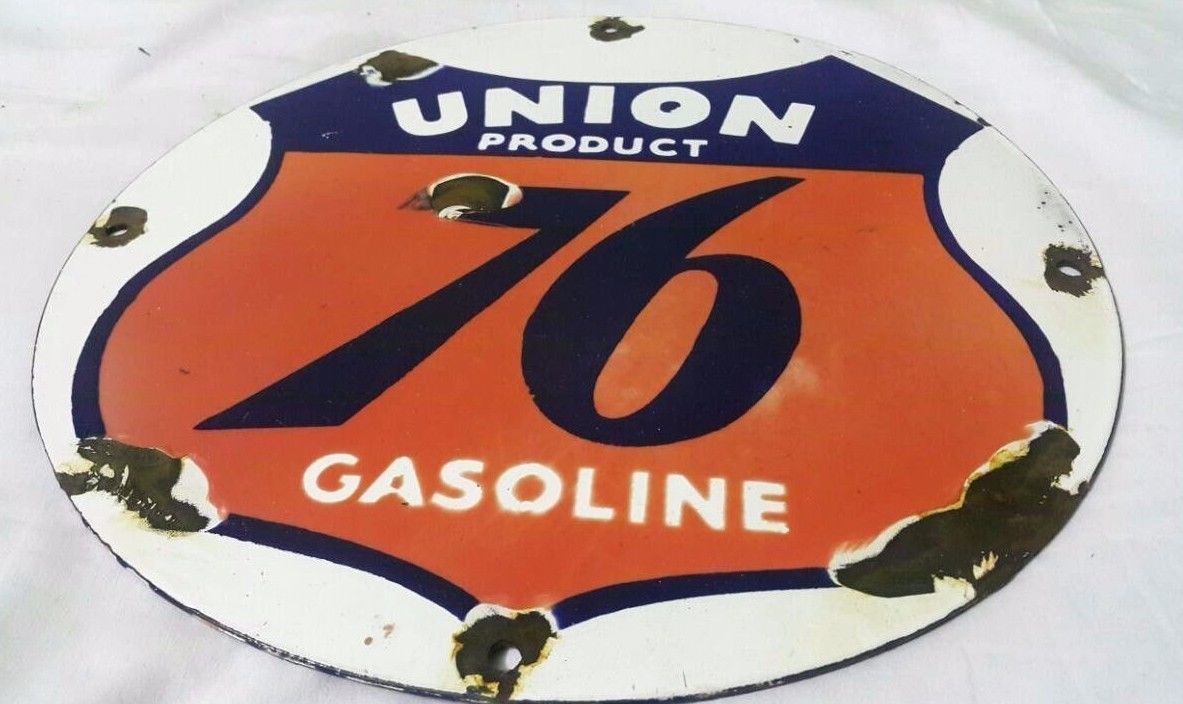Title (ebay affiliate link): UNION 76 GASOLINE PORCELAIN ENAMEL SIGN GAS AND OIL SIGN 12 INCH SINGLE SIDE