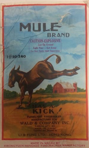 Vintage ICC Mule Brand Firecracker Brick Label