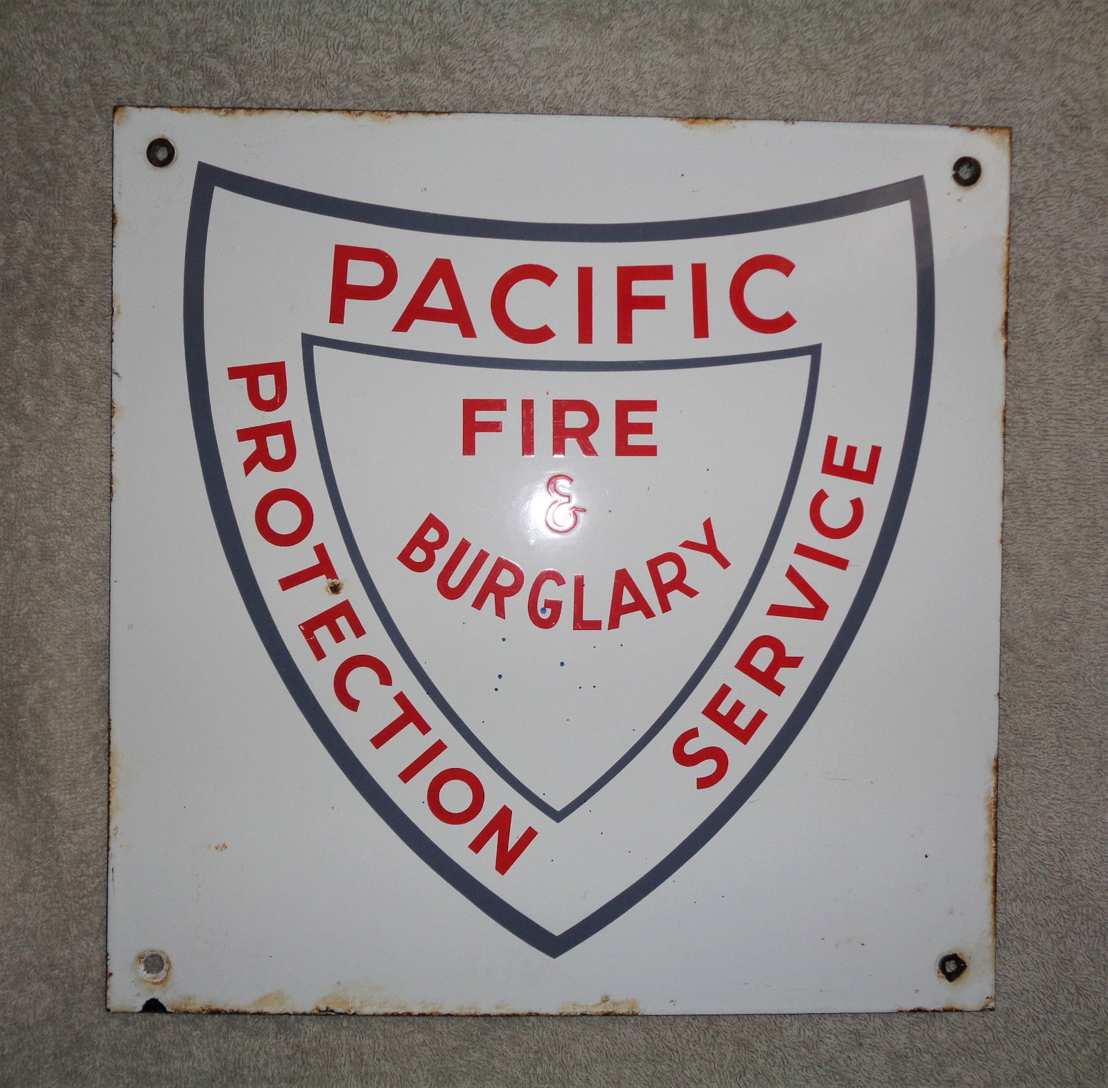 Vintage Porcelain Sign PACIFIC FIRE & BURGLARY