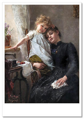ART Sewing Machine Comfort in Suffering Needlework Mom and Girl. Modern Postcard
