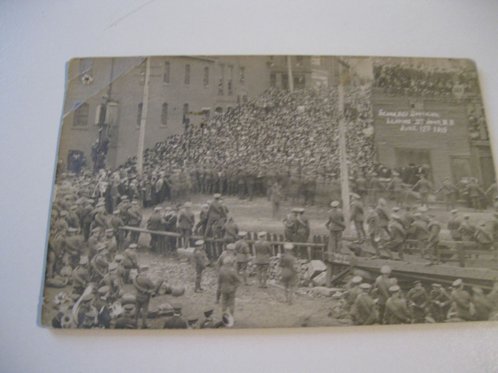 Title (ebay affiliate link): Scene of 2nd Battalion leaving st-john New Brunswick june 12th 1915 NB postcard