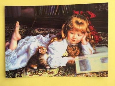 Title (ebay affiliate link): "Reading a book," little girl with a kitten , russian reprinting