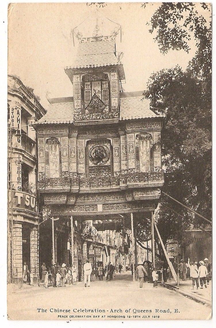 Title (ebay affiliate link): China Peace Celebration Day Arch of Queens Road people street Hong Kong Postcard