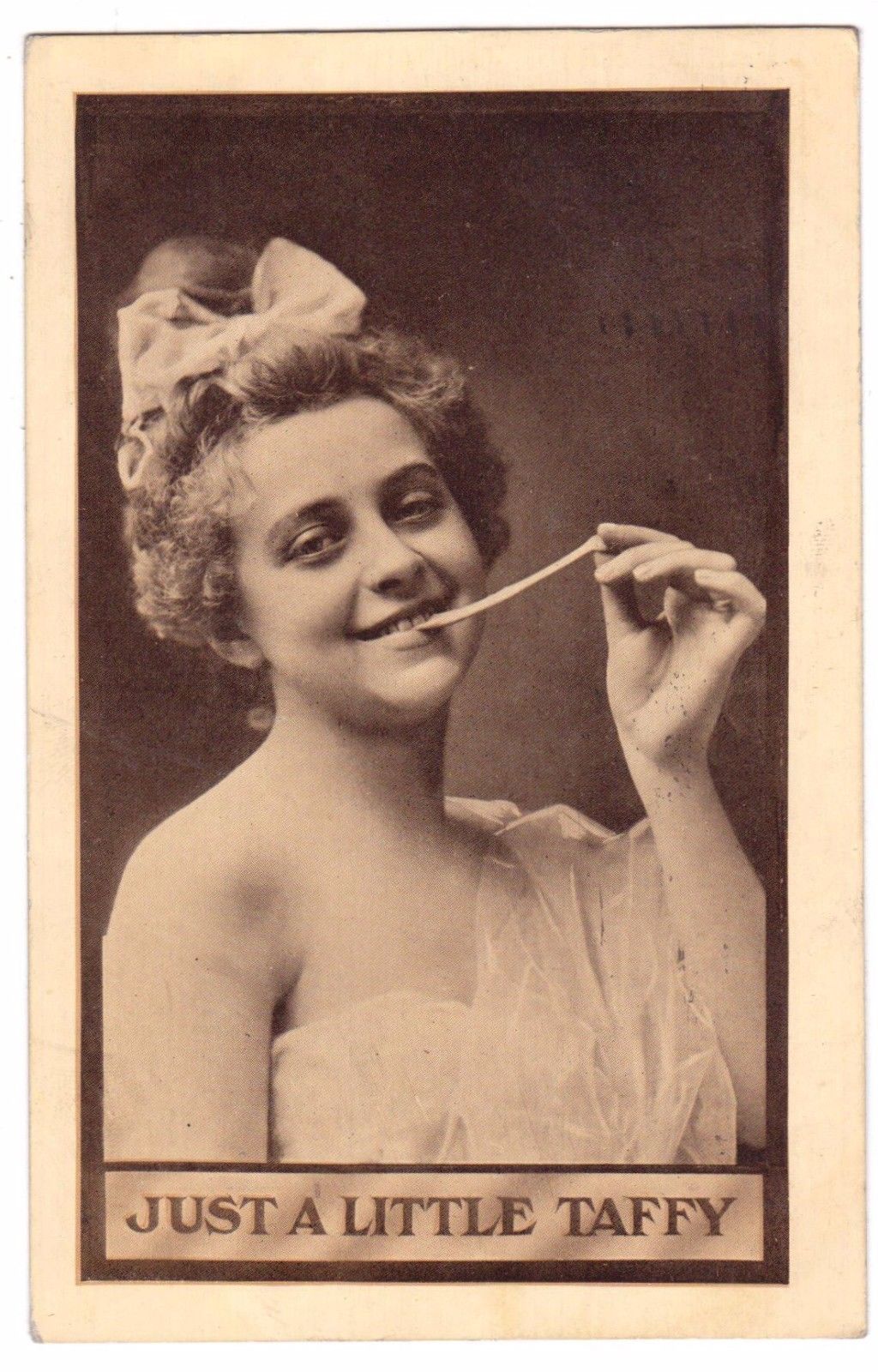 Title (ebay affiliate link): ANTIQUE 1910 YOUNG VICTORIAN GIRL JUST A LITTLE TAFFY POSTCARD