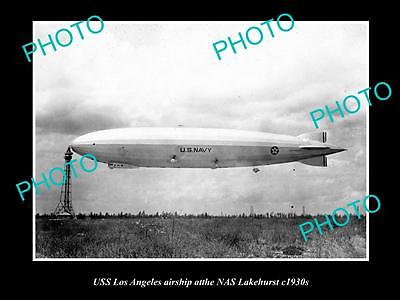 OLD LARGE HISTORICAL PHOTO OF USS LOS ANGELES AIRSHIP AT NAS LAKEHURST c1930s