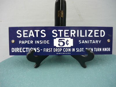 Porcelain Sign Seats Sterilized 5 Cents Restroom Sign
