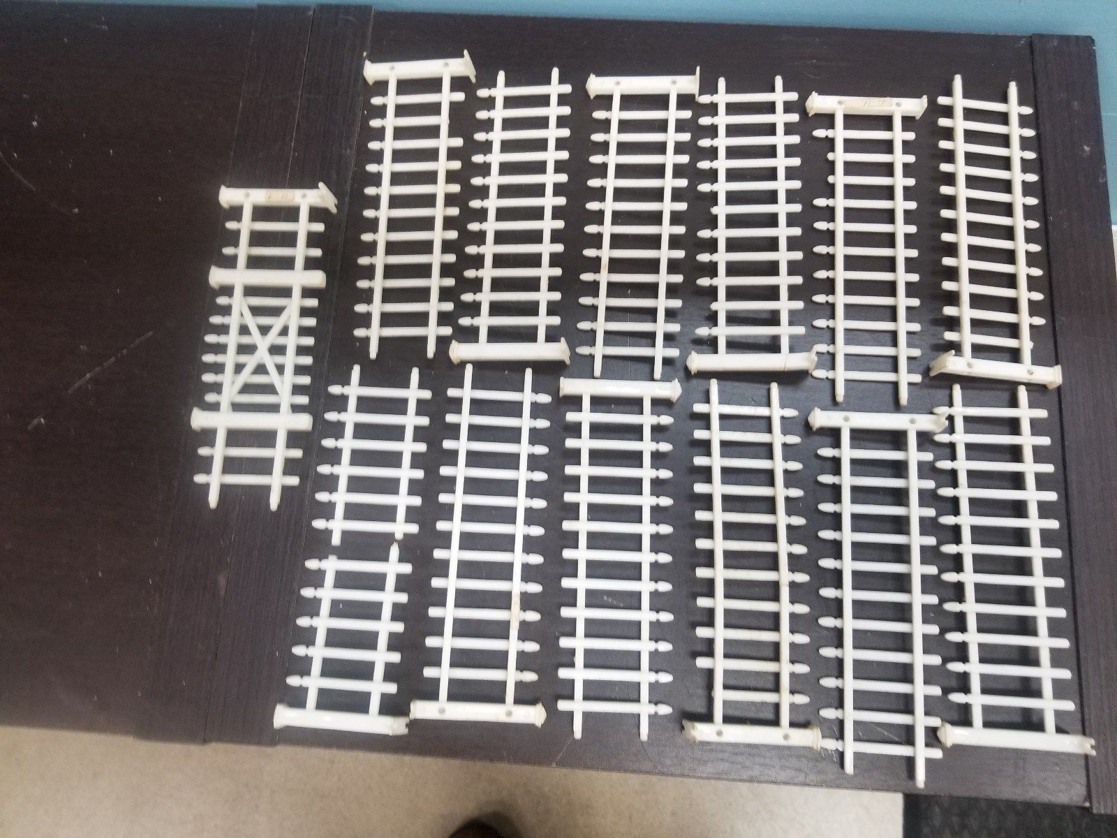 VINTAGE 11 WHITE PLASTIC PLASTICVILLE PICKET FENCE 1 GATE TRAIN VILLAGE 1950s